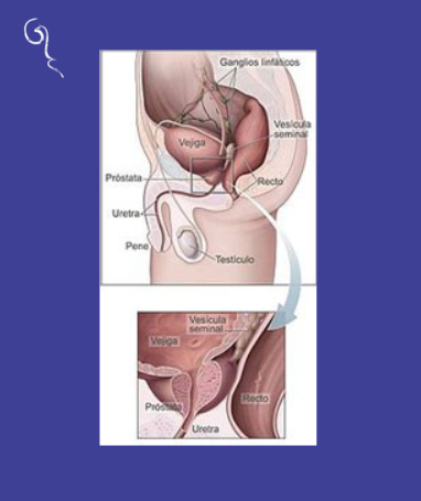 ANATOMIA NORMAL DE LA PROSTATA Y VEJIGA (VISTA LATERAL) La próstata, al crecer, puede ir comprimiendo progresivamente la uretra provocando, por tanto, dificultad al orinar. Esto sucede porque esta compresión impide el flujo de la orina desde la vejiga hacia la uretra hasta el exterior. Las posibles consecuencias son retenciones de orina en la vejiga o reflujo de la orina hacia los riñones y una necesidad de orinar frecuentemente. Si la inflamación fuera muy grave, puede bloquearse por completo el sistema urinario.