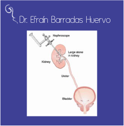La ureteroscopia flexible consiste en la introducción de un instrumento óptico a través de la uretra hasta las porciones más altas del uréter e incluso dentro del riñón, el cual tiene la particularidad de tener movimiento articulado en la punta de acuerdo a los movimientos del cirujano urólogo, y por donde se pueden introducir instrumentos que pueden atrapar los calculo o bien dejar transmitir la energía laser por una fibra que entra en su canal de trabajo y con esto se puede logra fragmentar el o los cálculos urinarios.