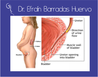 Normalmente, la orina se produce cuando se filtra la sangre a través de los riñones, y luego fluye desde los riñones a través de unos tubos llamados uréteres en una única dirección hasta llegar a la vejiga. La conexión entre cada uréter y la vejiga es una "válvula de paso" unidireccional que evita que la orina retroceda y regrese a los riñones. Durante la micción, el músculo de la vejiga se tensa y el esfínter de la uretra se relaja, lo que permite que la orina salga de la vejiga por otro tubo llamado uretra. Todo el sistema desde los riñones hasta la apertura urinaria se denomina tracto urinario.